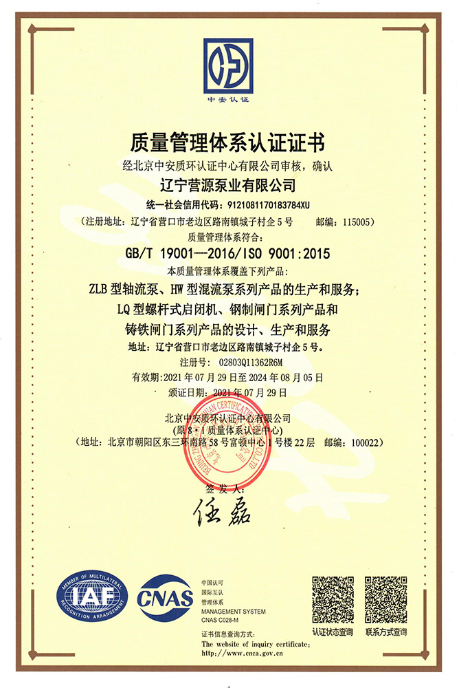 遼寧營源泵業(yè)有限公司始建于1995年,位于渤海之濱、遼河岸畔,東臨沈大高速公路、南靠營口鲅魚圈新港、北臨京沈高速公路,公司距營口高鐵站15公里距營口機(jī)場20公里,地理位置優(yōu)越,海陸空交通極為方便。公司主導(dǎo)產(chǎn)品是各種規(guī)格農(nóng)業(yè)水利及市政排污用軸流泵、混流泵、潛水軸流泵、漂浮式軸流泵、移動(dòng)式泵站、集裝箱式泵站、QJ系列井用潛水電泵、螺桿式啟閉機(jī)、固定卷揚(yáng)式啟閉機(jī)、平面鑄鐵閘門、中型鋼制閘門、GGD-YY型交流低壓配電柜。